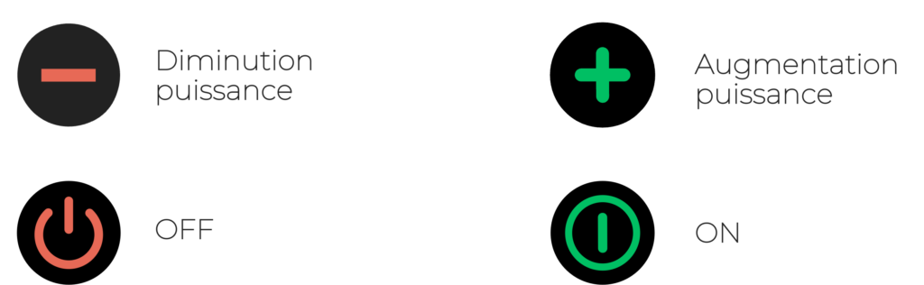 Si le bouton rouge est allumé, cela signifie que votre poêle est allumé. Pour l’éteindre, appuyer longuement sur le même bouton rouge.